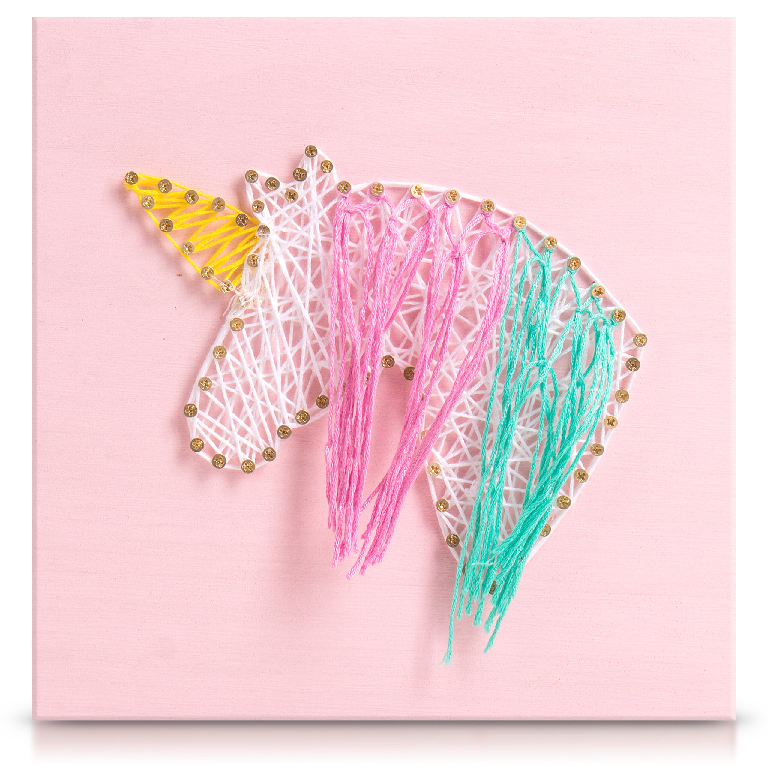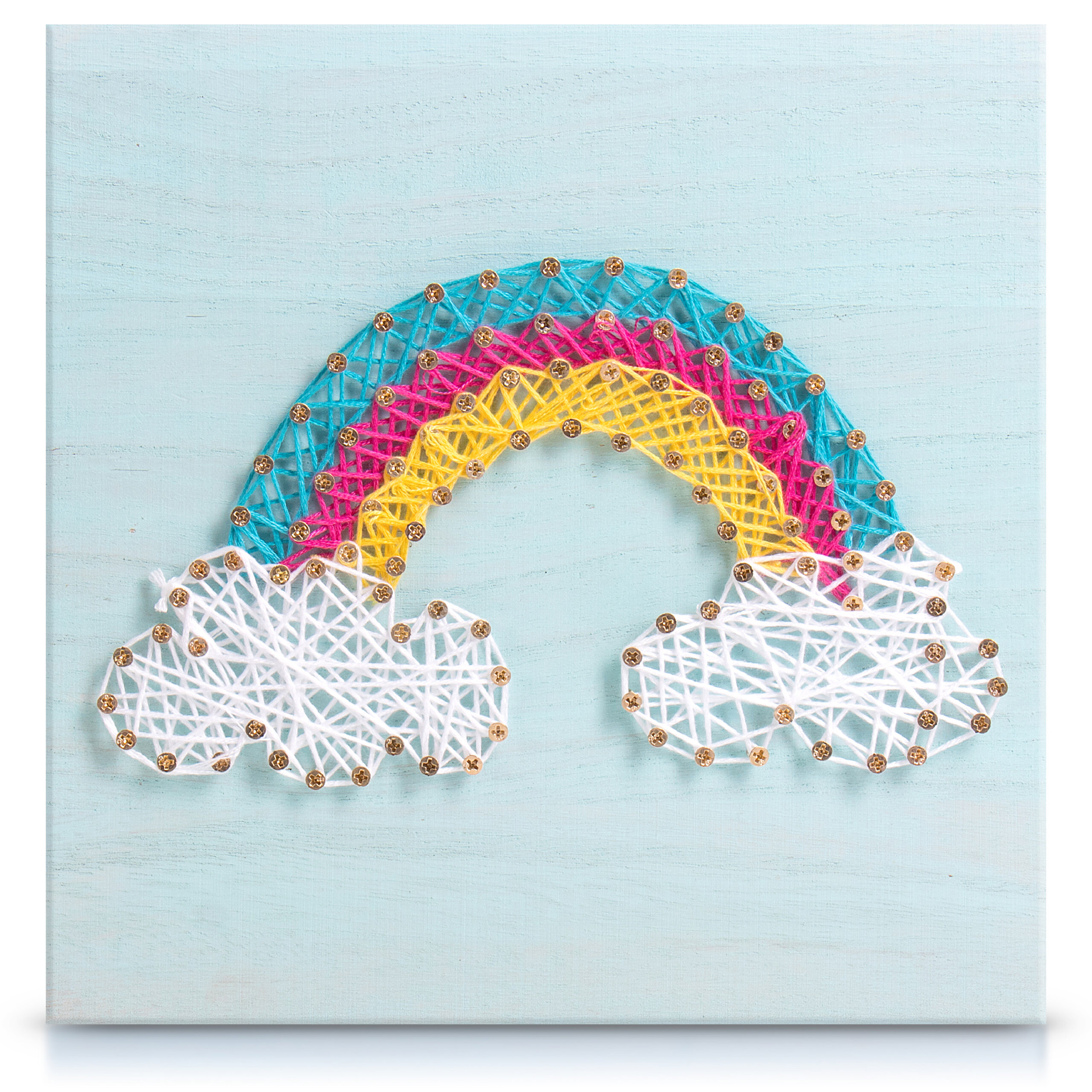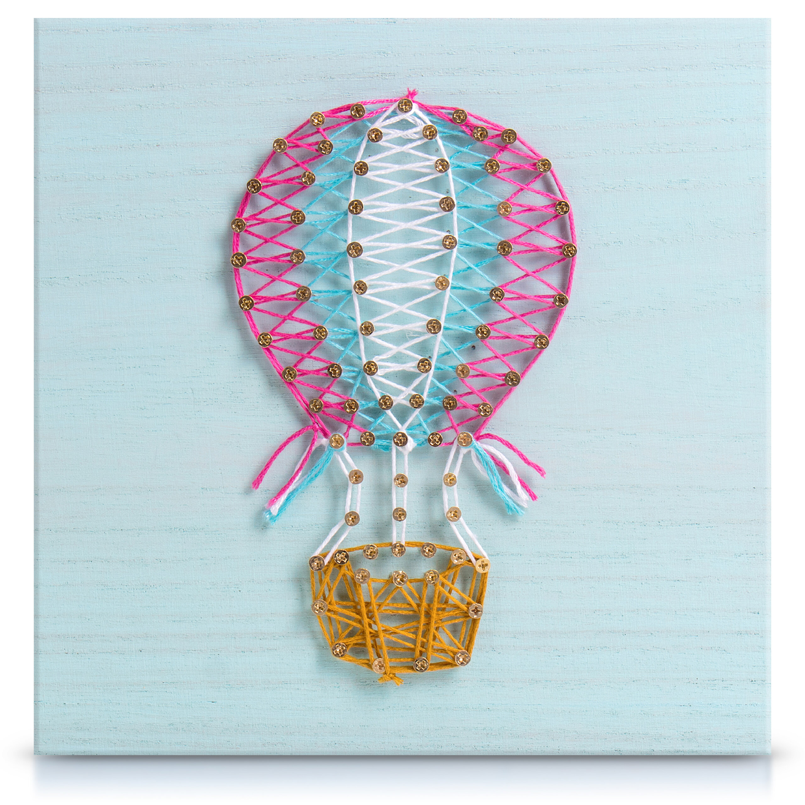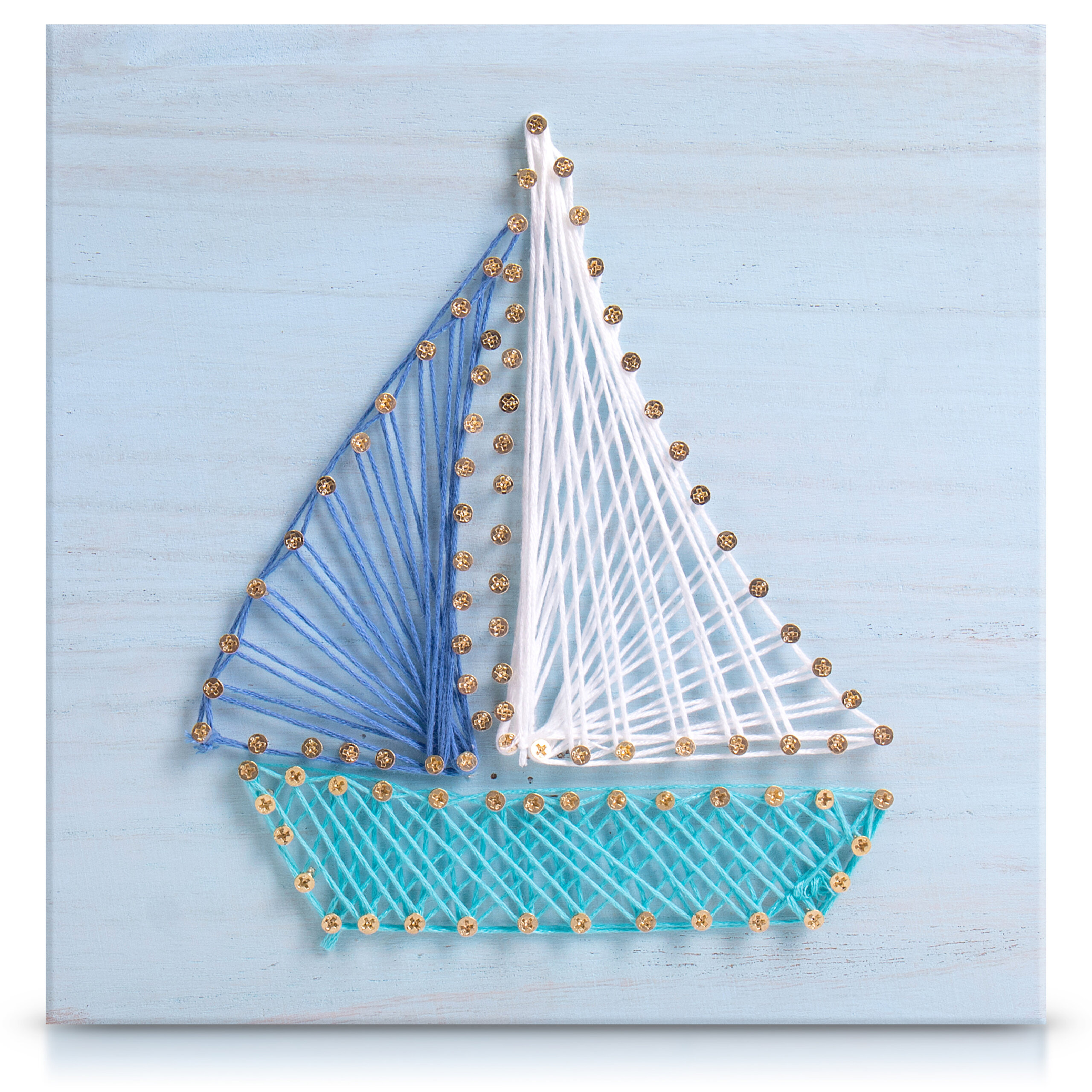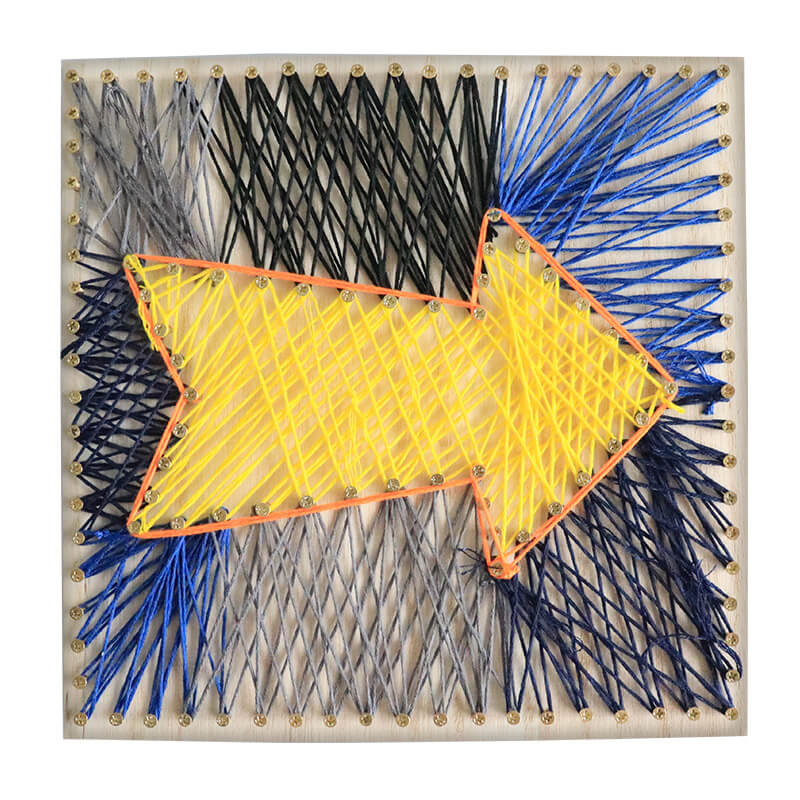 מבריגים את הברגים בנקודות המסומנות ומלפפים חוטים בין הברגים ליצירת התמונה. ניתן לתלות את התמונה בחדר הילדים.