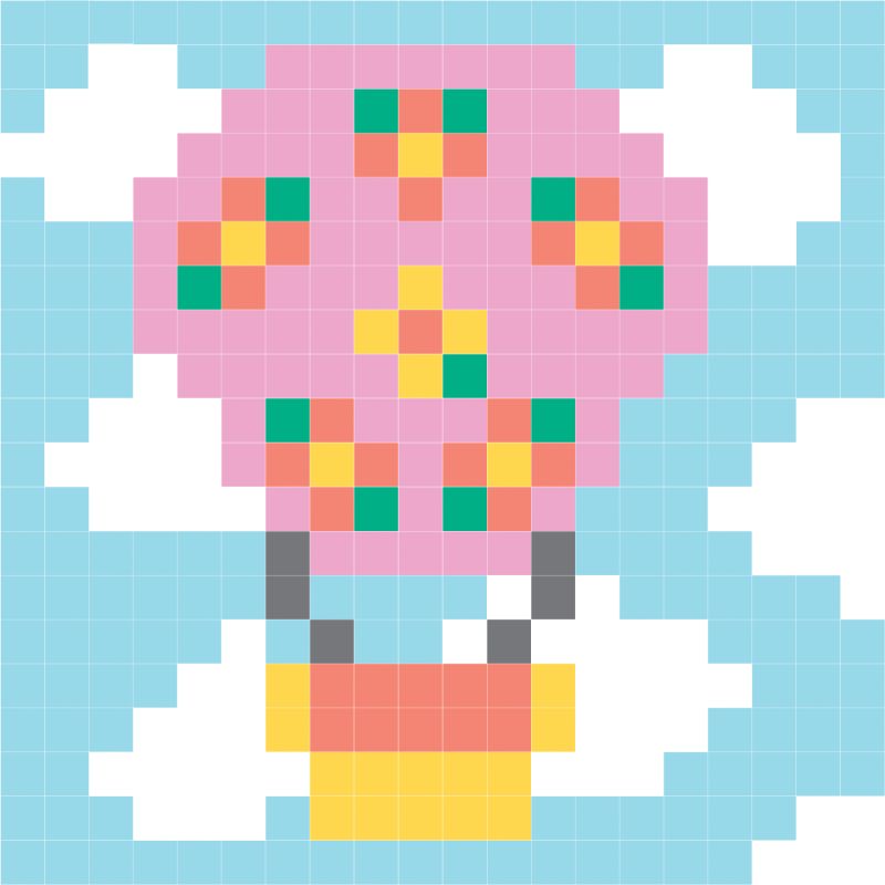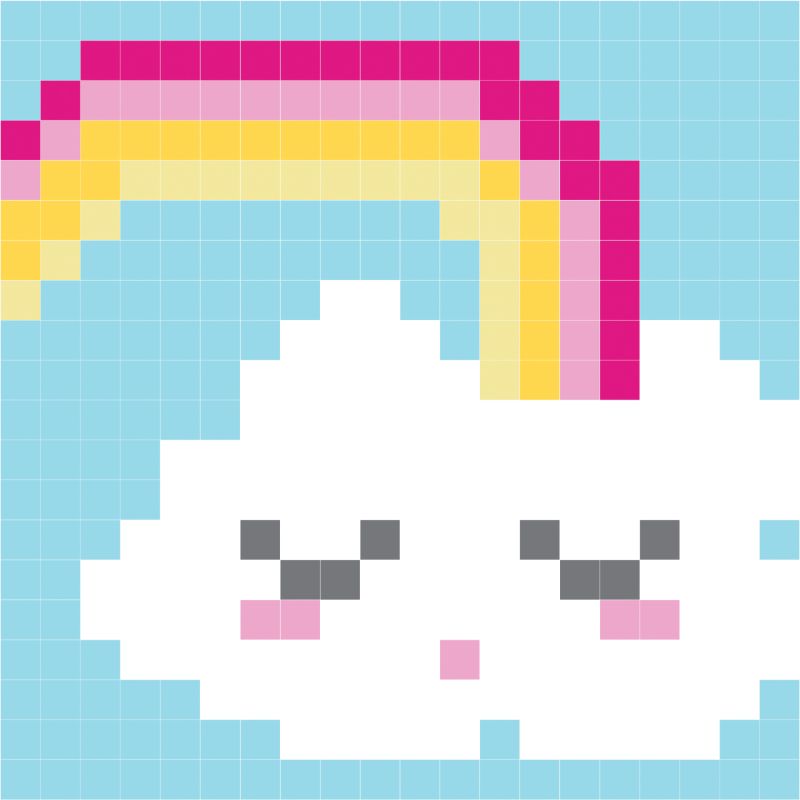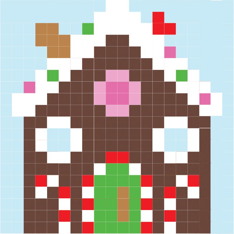 מוציאים את המחט באלכסון מהחור הצמוד בשורה התחתונה וחוזרים על טכניקת הרקמה עד לחילוף הגוון בתמונה.