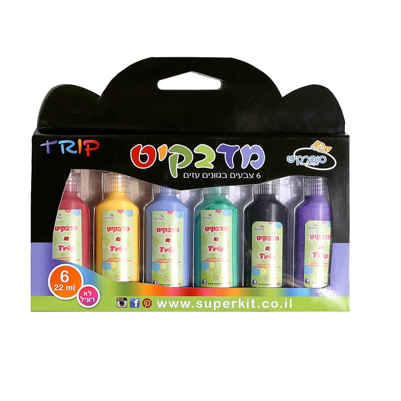 סט 6 צבעים, בגווני בסיס או ניאון, להכנת מדבקות חלון. ליצירת מדבקות חלון בעזרת מדבקות חלון או להכנת עבודות יצירה תלת-מימדיות על גבי משטחים נוספים כגון עץ, זכוכית, פלסטיק ועוד או להכנת צורות שונות בתבניות סיליקון קטנות. לא רעיל.